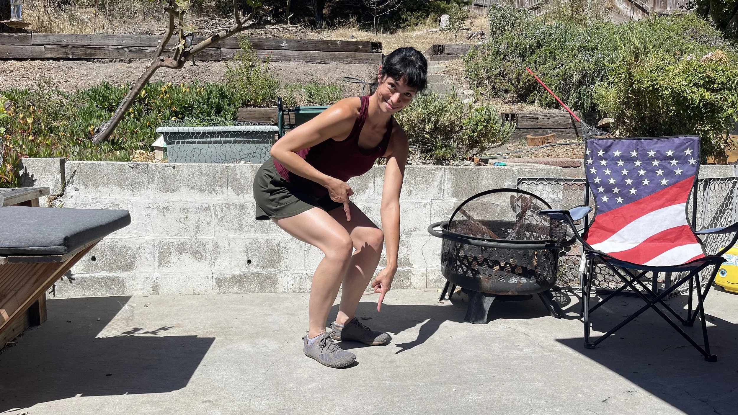 When you’re in your squat, think about: Pressing down into your full tripod foot as you press the knees out to the sides (right and left) so that they align with the center of your foot. Can you feel your outer glute activate?